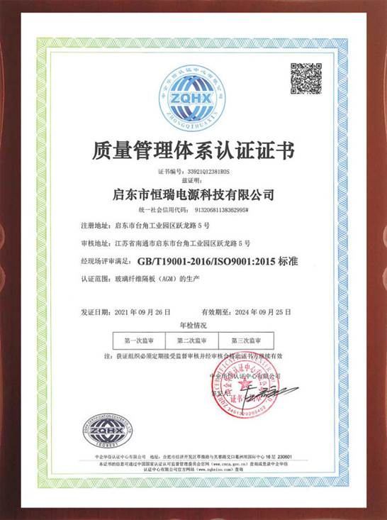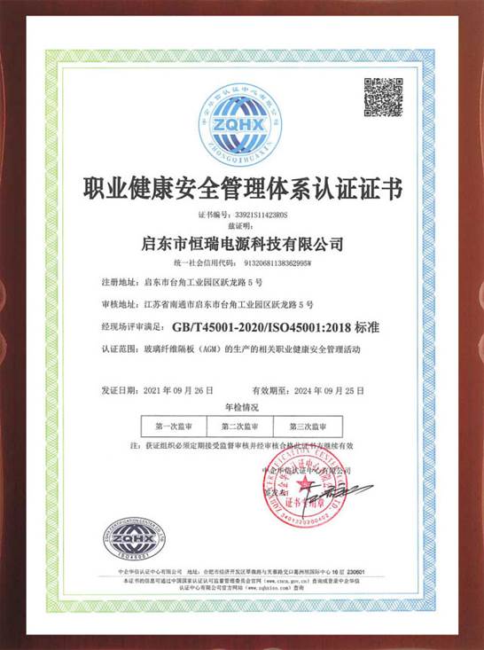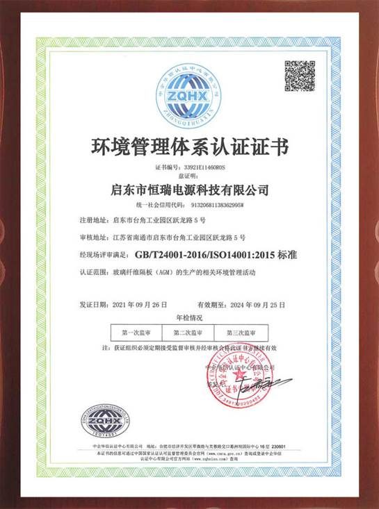 启东市恒瑞电源科技有限公司通过质量管理体系,环境管理体系,职业健康安全管理体系认证